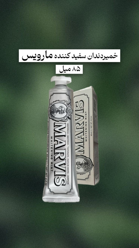 خمیر دندان سفید کننده نقرهای مارویس بافتی غنی و خامهای داشته و طعم تند و نعنایی آن به شما حس خنکی و تازگی میدهد.