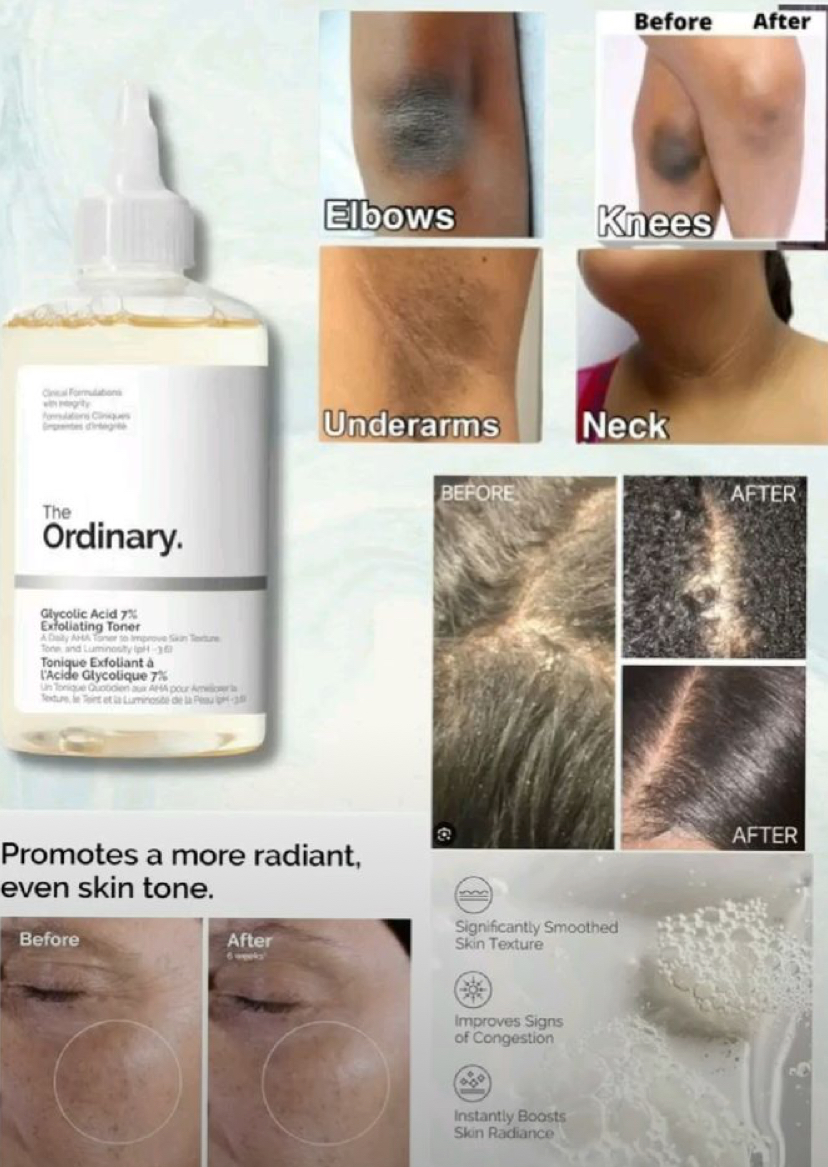 تونر گلیکولیک اسید هفت درصد اردینری منافذ پوست را به طور کامل پاکسازی کرده و چربی اضافه پوست را نیز کنترل می کند و از این رو از ایجاد جوش و آکنه نیز جلوگیری می نماید و پوست را نرم و شاداب می کند. این تونر حاوی ماده گیاهی توت فلفلی است که سبب می شود تا رنگ محصول با توجه به فصلی که در آن تولید شده است، متفاوت باشد. این تونر لایه بردار اردینری کاملا وگان و فاقد چربی و مواد مضر و ترکیبات حساسیت زا از جمله پارابن، سولفات، گلوتن، الکل، فتالات، هیدروکینون و ... بوده و همچنین تست حیوانی ندارد و برای انواع پوست ها مناسب می باشد.