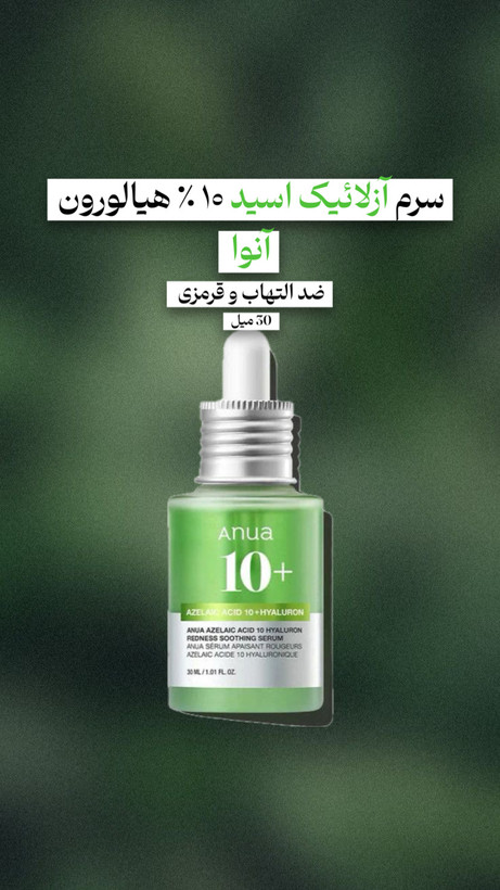 سرم آزلائیک اسید 10% هیالورون آنوا (Anua Azelaic Acid 10% + Hyaluron Redness Soothing Serum) سرمی پرطرفدار از برند کرهای آنوا در زمینه مراقبت از پوست است. این سرم با ترکیب آزلائیک اسید با غلظت ۱۰ درصد و هیالورونیک اسید، هم به درمان مشکلات پوستی نظیر آکنه، قرمزی، التهاب و لکهای پوستی کمک میکند و هم رطوبت و آرامش را برای پوست به ارمغان میآورد.